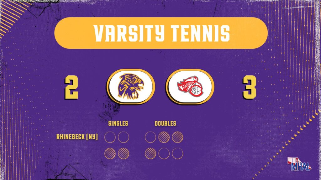 Red Hook narrowly won a tightly-contested match in windy & cold spring conditions. The deciding match was in 1st singles, where after splitting sets and finding himself 2 points from defeat, Red Hook’s Jack Kurlander fought back and overcame Rhinebeck’s Gabe Renaldo 7-5 in the third set. Great quality and shotmaking from both players throughout the match.